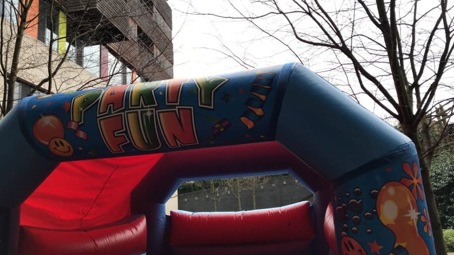 PARTY WITH OUR BALLOON PARTY THEME BOUNCY CASTLE.