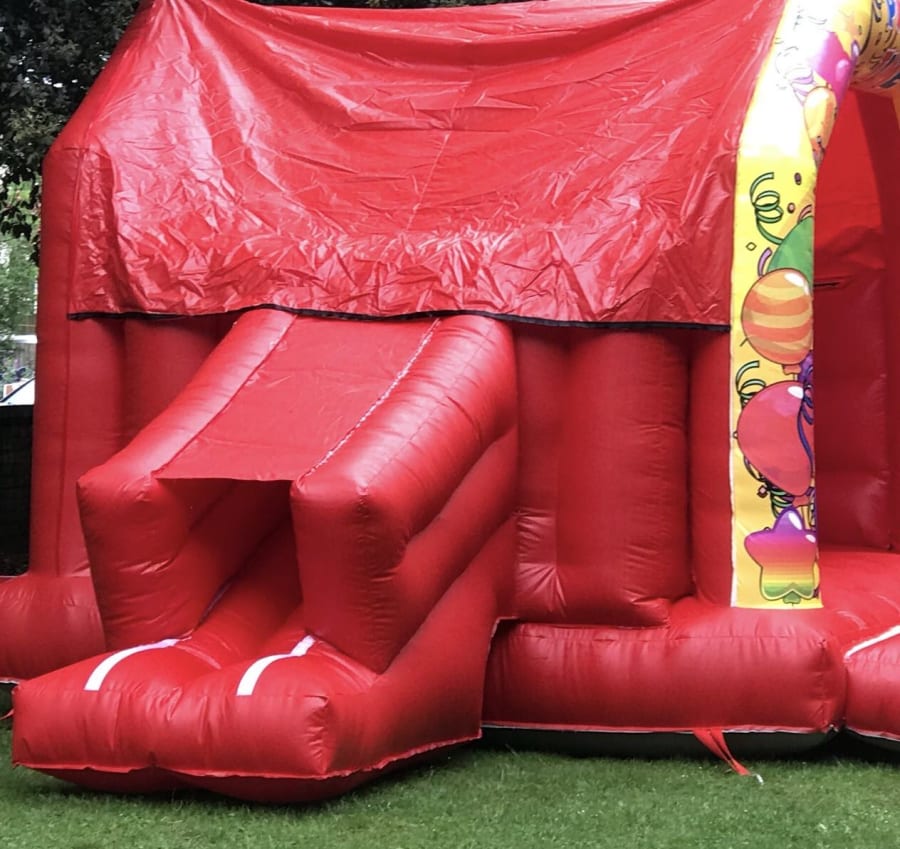 THIS IS A CARNIVAL THEME JUMP AND SLIDE BOUNCY CASTLE WITH A FRONT FACING SLIDE