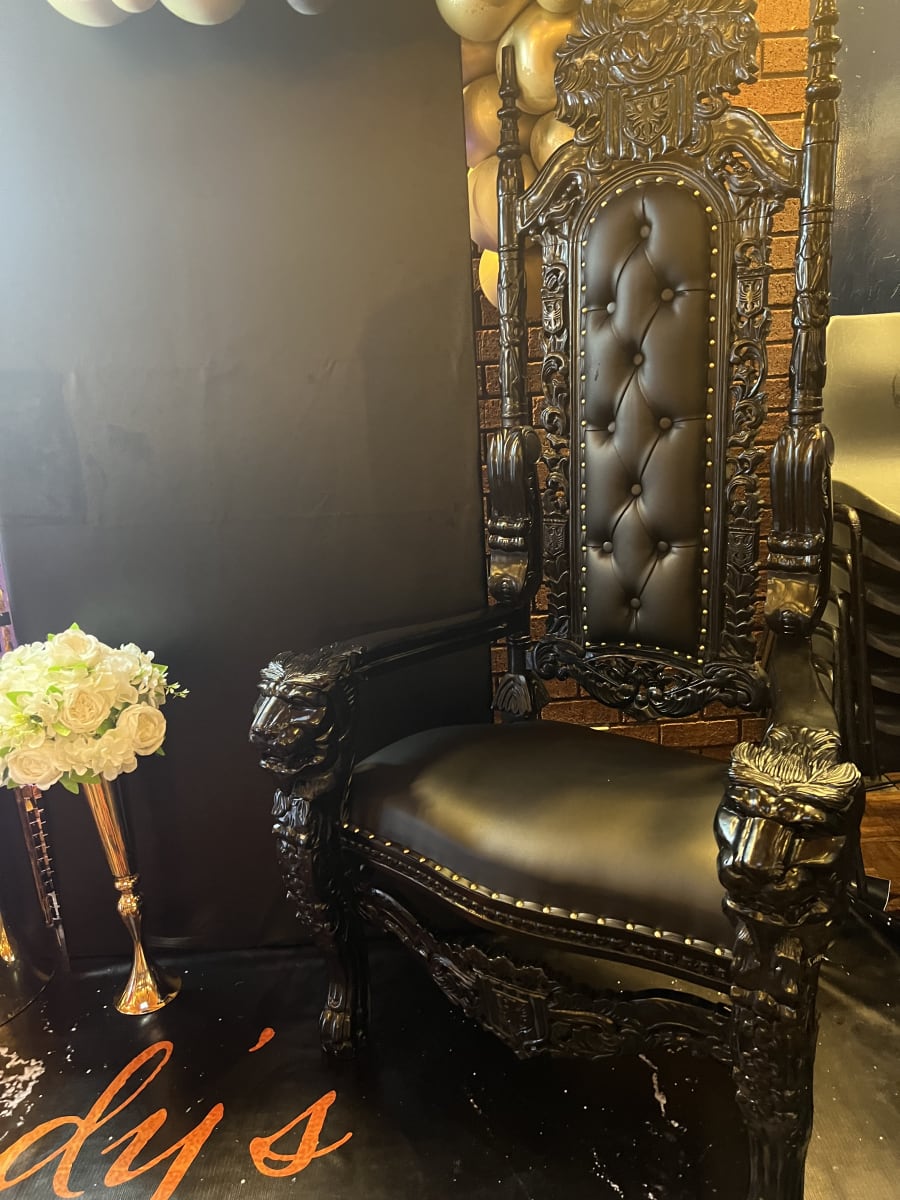 Introducing the Black Throne Chair, a majestic and regal seating option that will add a touch of luxury to any event or occasion. Crafted with meticulous attention to detail, this exquisite chair is designed to make a statement and elevate your experience to new heights.