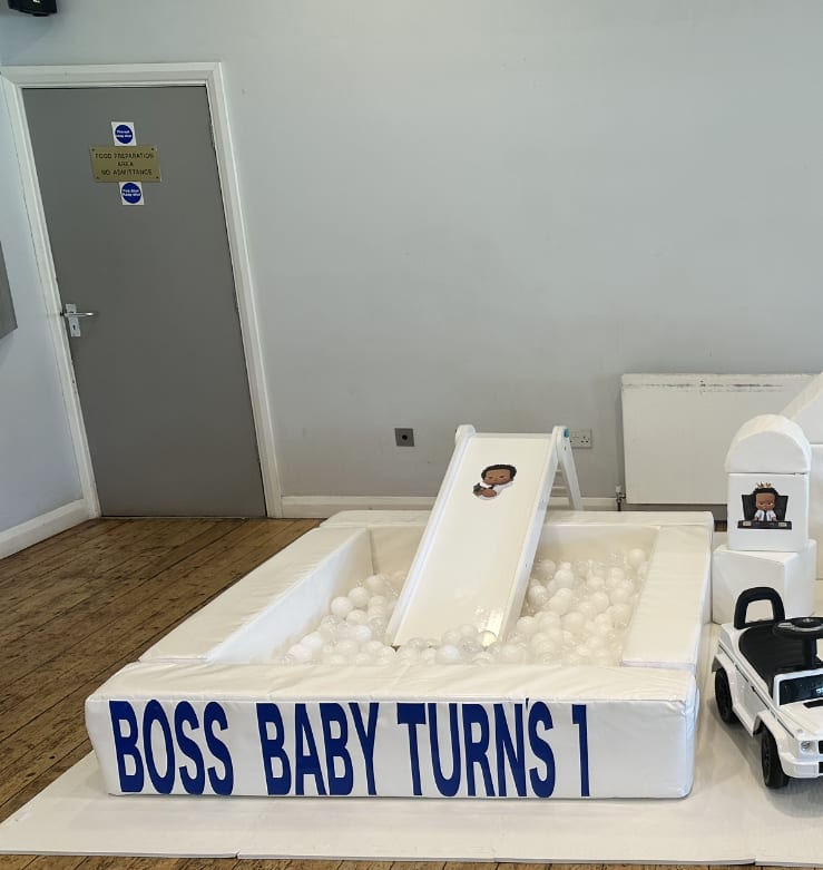 additional extras which blends perfectly with this pond. Soft play set And white bouncy castle