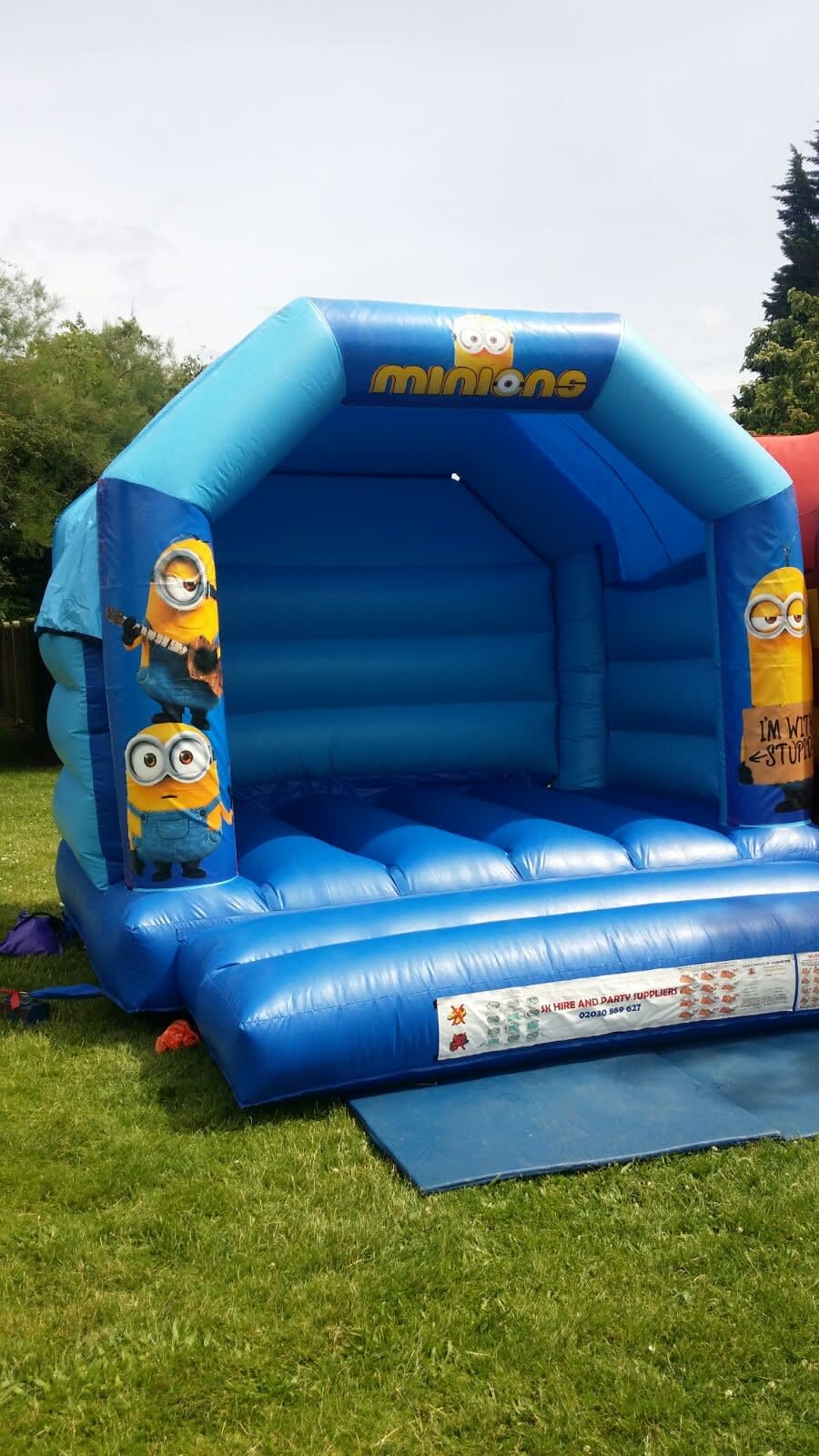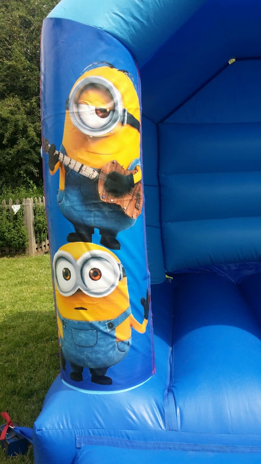 HIRE OUR AMAZING HIGH QUALITY, BRIGHT AND EYE CATCHING, MINION BOUNCY CASTLE GET YOUR KIDS BOUNCING WITH THE YELLOW MINION ADVENTURERS.