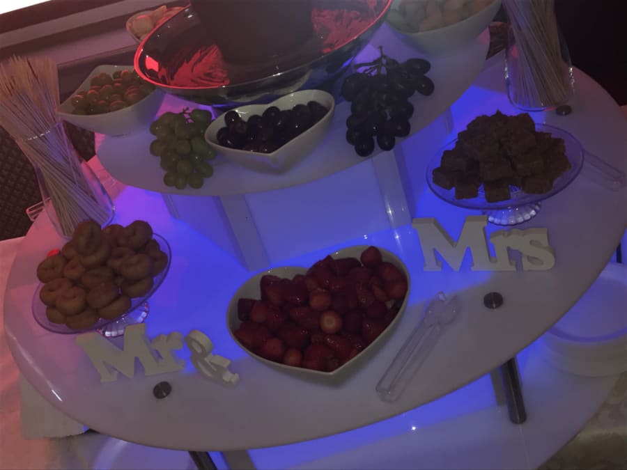 This includes a choice of either Milk, Dark or White (unlimited) finest Belgian chocolate and the choice of 12 dips unlimited, Plates, Skewers, Napkins in your colour scheme and the services of an experienced, uniformed staff, providing you with bespoke table dressing and an illuminated base.