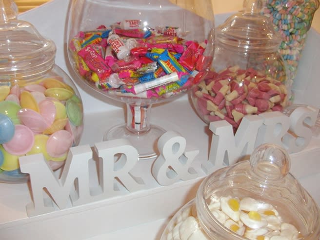 Our beautiful, hand crafted, traditional, sweet cart comes in a brilliant white with traditional wagon wheels and an attractive combination of glassware shows off the sweeties at their very best. Whether your event has a theme or special occasion, we are sure to provide a sweet cart that will wow your guests with a selection of canopy colour and bags colour choices to suit your occasion.